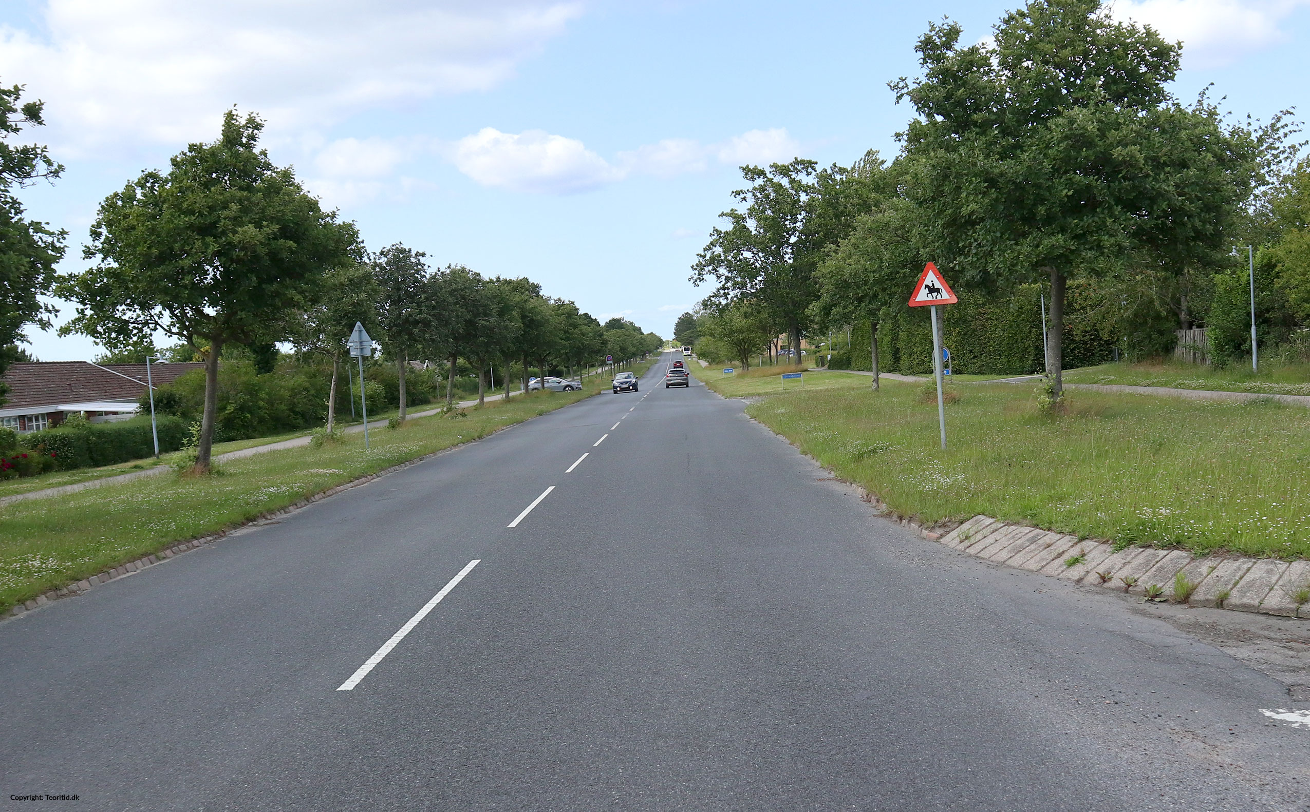 Advarselsskiltet advarer om en vej, hvor heste og ryttere kan befinde sig.