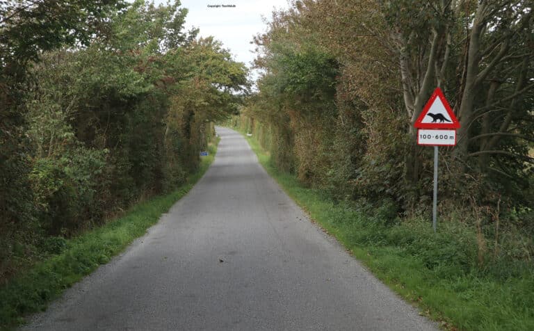 Færdselsskiltet signalerer at der kan passere oddere og at det kræver man er forsigtig og årvågen.