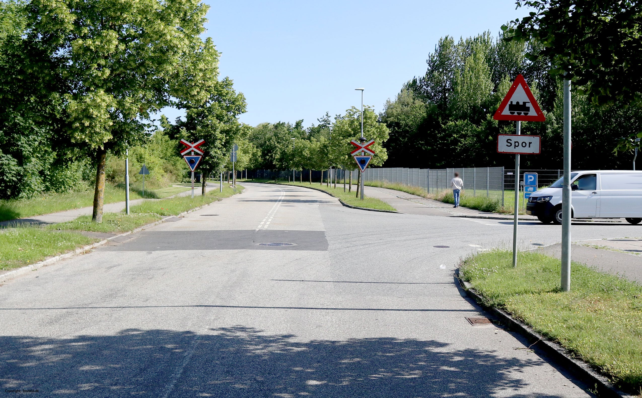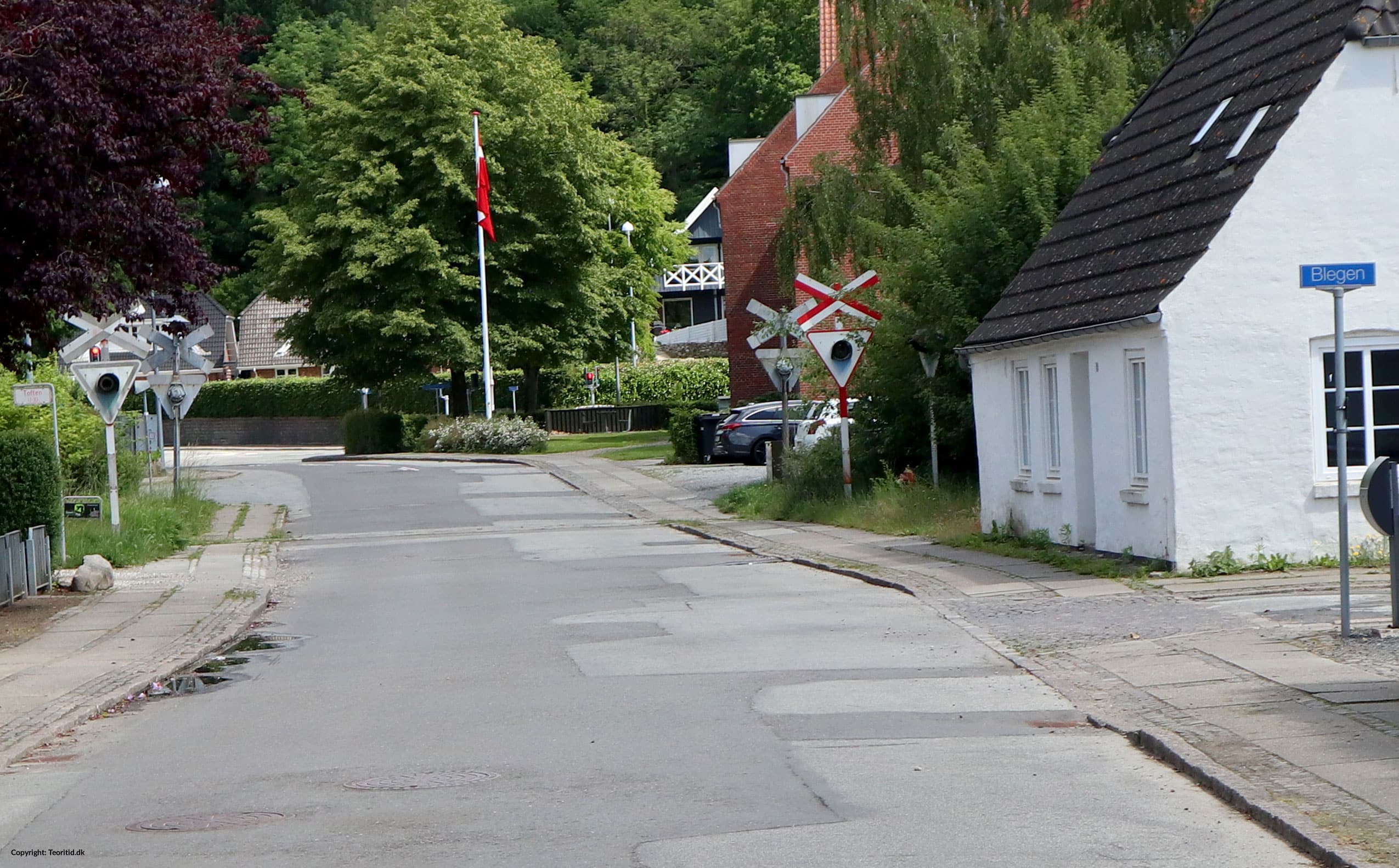 Tavlen angiver enkeltsporet jernbaneoverkørsel.