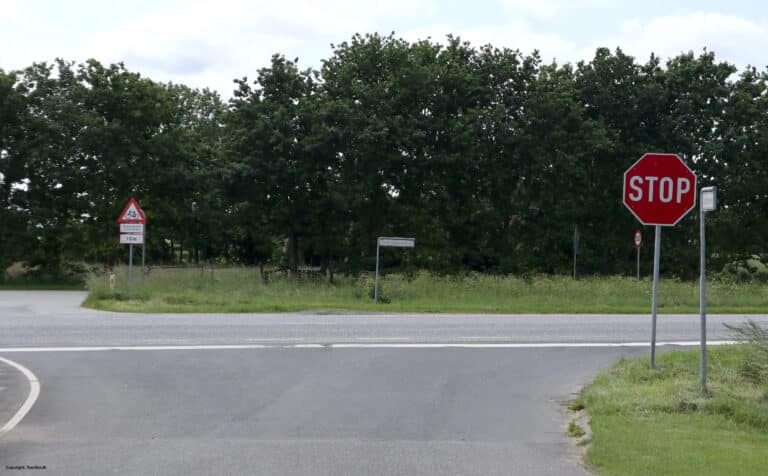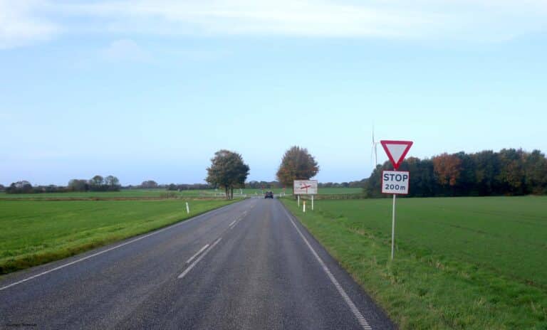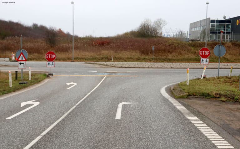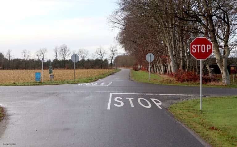 Tavlen angiver, at kørende har ubetinget vigepligt og skal stoppe før fremkørsel i et kryds eller før fremkørsel over jernbanespor. I kryds kan cyklister og førere af lille knallert, der lovligt benytter cykelstien, dog uden at stoppe svinge til højre ad cykelsti langs den krydsende vejs højre side, hvis dette kan ske uden ulempe for andre trafikanter.