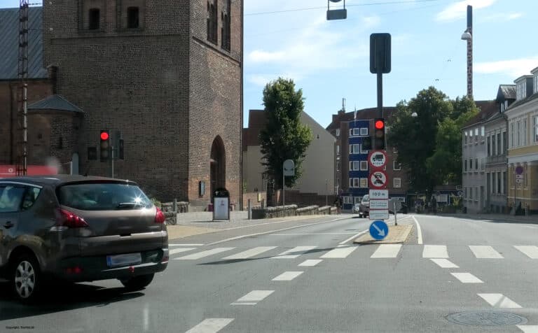 Tavlen forbyder kørsel med køretøjer, herunder vogntog, hvis længde inklusive læs er større end den angivne.
