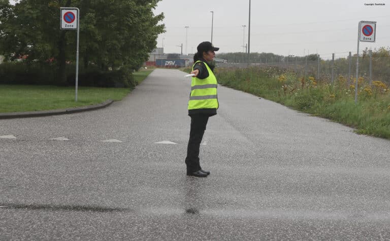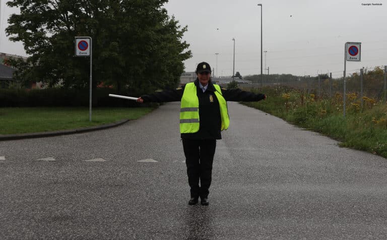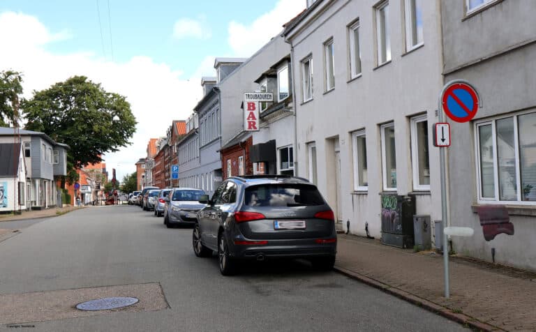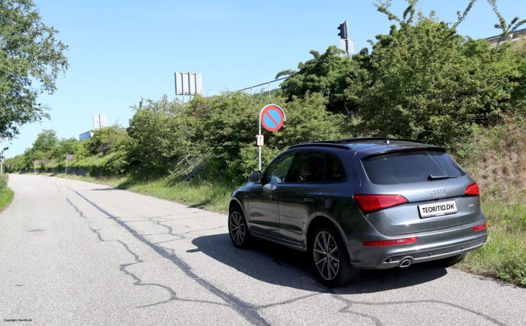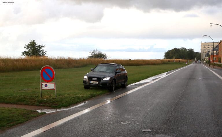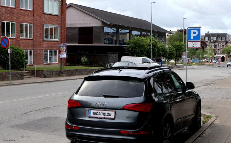 Tavlen forbyder parkering på kørebanen. Forbuddets nærmere indhold kan angives på undertavle.