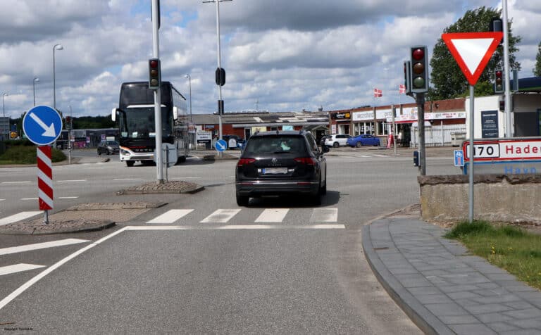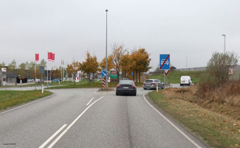 Pladerne angiver, at motorkøretøjer og store knallerter skal passere pladerne på den side, striberne hælder ned imod. Det gælder dog ikke for kørsel til stoppested, i busbane, parkeringsbane eller lignende.