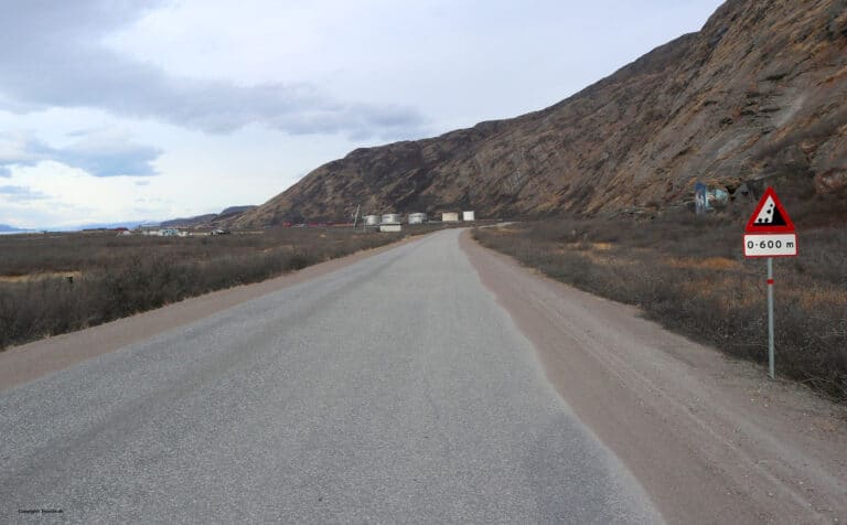 Hovedtavlens angivelse gælder for en vejstrækning. Tallene angiver afstanden fra tavlen til vejstrækningens begyndelse og slutning.