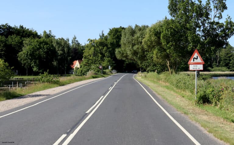 Hovedtavlens angivelse gælder for en vejstrækning. Tallene angiver afstanden fra tavlen til vejstrækningens begyndelse og slutning.